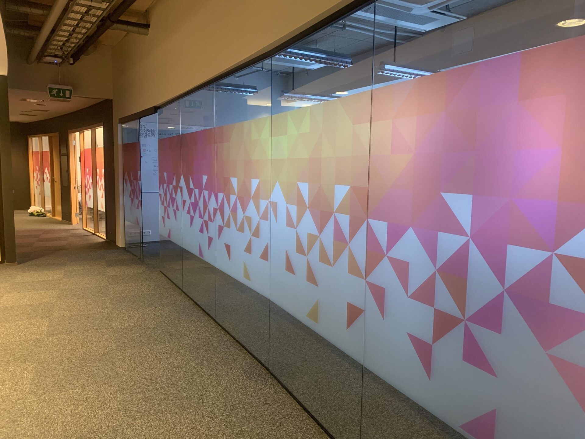 Matt- ja mustrikiled piiravad otsevaadet, kuid lasevad valguse läbi. See tähendab, et ruum püsib helge, samas on töökohad ja kohtumised privaatsemad. Väga levinud on ka triibumustrid või osaline kiletus “silmakõrguse tsoonis”, mis jätab ruumi avaraks, kuid eemaldab ebamugava akvaariumi tunde.